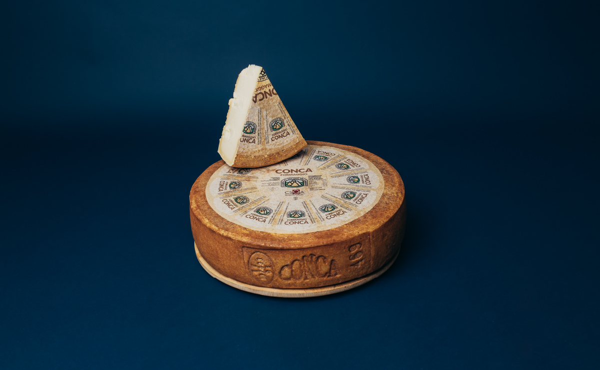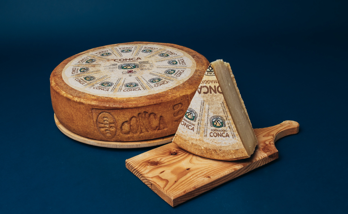 Formaggio prodotto con latte intero, ha una stagionatura medio-lunga, dai 5 agli 8 mesi, pasta semicotta compatta, pastosa ma al tempo stesso elastica. Di forma cilindrica, con un diametro di circa cm 33, può pesare dai 7.2 ai 7,8. kg La stagionatura medio-lunga dona al "Conca" un sapore intenso, anche se morbido e con ancora un retrogusto dolce, un profumo pronunciato ed un colore paglierino chiaro. Durante la stagionatura, come tradizione secolare nelle nostre valli, la crosta viene oleata con olio di lino crudo alimentare per evitare una eccessiva essicazione e dare una protezione alla stessa. Particolarmente adatto per fondute o fuso alla piastra.